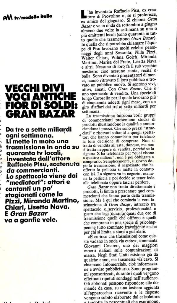 Fonti: “Guida Tv” ed “Il Resto del Carlino”.