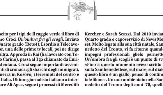 Remo Croci, intervista e recensione del suo ultimo romanzo UN’OMBRA FRA GLI SCOGLI su Libero (di Massimo Emanuelli)