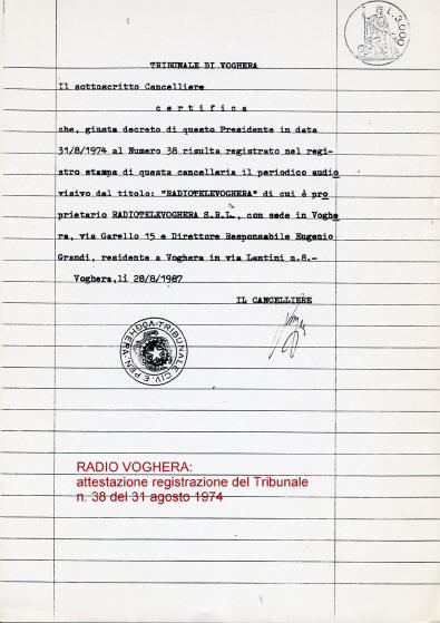 Le origini di questa storica emittente via cavo risalgono al 1974, in data 31 agosto 1974 al n.38 del Registro del Tribunale di Voghera viene registrata la testata RadioteleVoghera Giornale Audiovisivo, soci fondatori sono Luigi Orsi (futuro editore di Radio Voghera scomparso nel 2015), Eugenio Grandi (scomparso nel 2004), Roberto Aguzzi. Luigi Orsi è uno studente universitario, Eugenio Grandi ha lavorato come giornalista alla tv della Svizzera italiana (direttore Marco Blaser), aveva partecipato alla trasmissione AMICHEVOLMENTE curando alcuni servizi sui cantanti italiani, fra i quali Mina. Radiotelevoghera effettuò alcune trasmissioni sperimentali via cavo ma – ricorda Luigi Orsi – dopo questi esperimenti, durati un anno, dati i costi, i tre soci decisero di concentrarsi sull’emittente radiofonica, ha quindi inizio la storia di Radio Voghera.