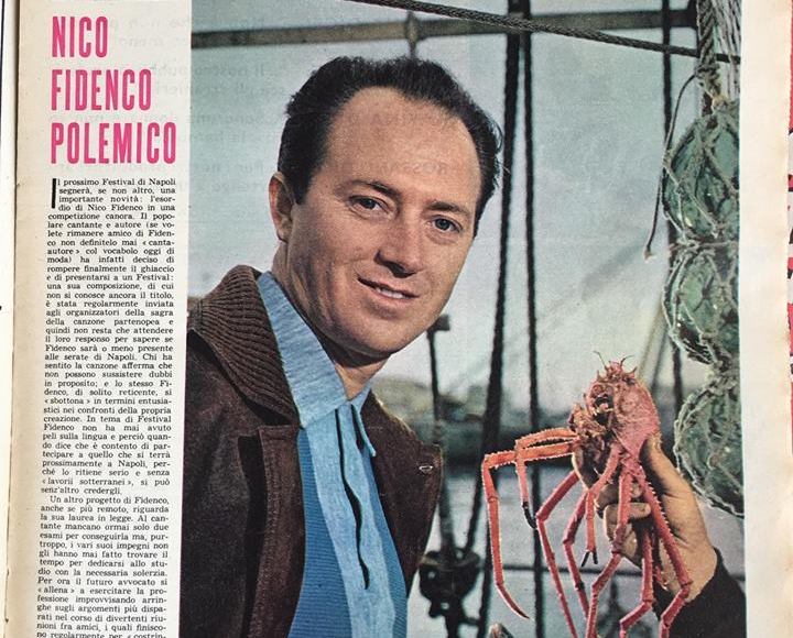“Nico mi chiamavano da sempre in famiglia, il diminutivo di Domenico, Fidenco fu scelto fra una terna di cognomi, tutti terminavano in “enco”, dalla Rca”. Il film I delfini viene presentato alla Mostra del Cinema di Venezia, troppo avanti coi tempi, e pur ottenendo buona accoglienza da parte della critica ha un modesto esito nelle sale cinematografiche. La colonna sonora però ha un incredibile ed insperato successo: la casa discografica inizialmente non prevedeva la pubblicazione del pezzo su 45 giri, ma le pressioni da parte dei negozianti e dei grossisti, dovute alle pressanti richieste del pubblico, spinsero l’etichetta non solo a pubblicare la versione inglese, ma a riportare di corsa Fidenco in sala d’incisione per registrare sulla stessa base orchestrale la versione in italiano Su nel cielo da mettere sul lato B del 45 giri.