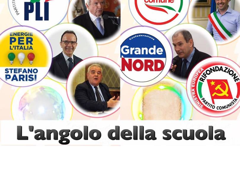 Fedeli al motto “diamo voce a chi non ha voce” faremo parlare gli “altri partiti” ingiustamente oscurati dai grandi media. Ascolteremo il loro programma sulla scuola e in generale. I primi ospiti saranno Giancarlo Morandi (Partito Liberale), Federico Pizzarotti (Italia in Comune), Roberto Bernardelli (Grande Nord), Paolo Ferrero (Rifondazione Comunista), Stefano Parisi (Energie per l’Italia).