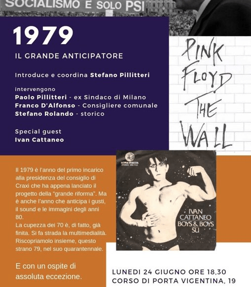 Nel 1979 l’allora Presidente della Repubblica Sandro Pertini incaricò Bettino Craxi di dare vita ad un governo. Era la prima volta dopo 33 anni (quando premier fu l’azionista Ferruccio Parri) che l’incarico veniva conferito a un non democristiano. La prima volta in assoluto ad un socialista. Bettino Craxi non riuscì a costituire il governo, ma tale esperimento sarà precursore degli anni ’80 segnati dai governi socialisti. Anche Ivan Cattaneo inizia la sua attività artistica negli anni ’70 ed esploderà poi negli anni ’80. Stefano Rolando negli anni ’70 era assistente dell’allora Presidente della Rai Paolo Grassi, negli anni ’80 sarà poi assistente di un altro Presidente della Rai, Sergio Zavoli. Paolo Pillitteri negli anni ’70 era assessore alla cultura del Comune di Milano, diventerà sindaco di Milano negli anni ’80. Stefano Pillitteri era allora uno studente, appassionato di musica e politica, Massimo Emanuelli era uno studente, già ai microfoni di Radio Ambrosiana. Io mi occupavo di musica e di scuola, cosa che faccio ancora oggi, poi arrivò qualcuno che mi insegnò ad intervistare i politici. Giovanissimo assistevo ad alcuni eventi, di musica e di spettacolo, come speaker, ignaro di diventarne molti anni dopo, un po’ lo storico. Gli anni ’80, quelli della Milano riformista, prima demonizzati, poi rimpianti, musicalmente e politicamente, poi dipende dai punti di vista, noi li abbiamo vissuti.