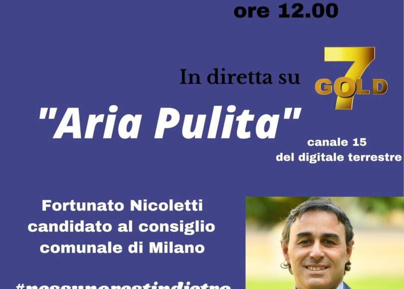 Martedì 14 settembre alle ore 12,00 Fortunato Nicoletti alle ore 12,00 sarà ospite della trasmissione Aria pulita condotta da Simona Arrigoni su 7Gold (canale 15 del digitale terrestre).