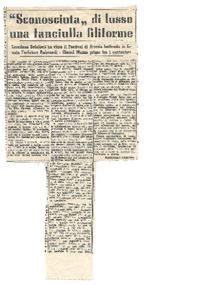 Da allora di Loredana Bufalieri si persero le tracce. Ad ogni modo, la Signora Gaggioli ci ha fornito alcuni ritagli di giornali e periodici dell’epoca che riportano nei dettagli la notizia del successo della madre a quel “talent” (come a quei tempi ancora non si diceva) di 57 anni fa, anche per evidenziarne l’assoluta regolarità con cui esso si svolse e furono poi proclamati i relativi risultati.