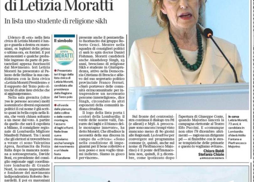 Una mia vecchia intervista a Roberto Bernardelli (2018) guardate e ridete, soprattutto al minuto 18 quando io Bernardelli dicevamo di essere specializzati nel fare liste di disturbo che servono a far perdere qualcuno, e, di converso, a far vincere qualcun altro. Ora si aggiunge anche Letizia Moratti?