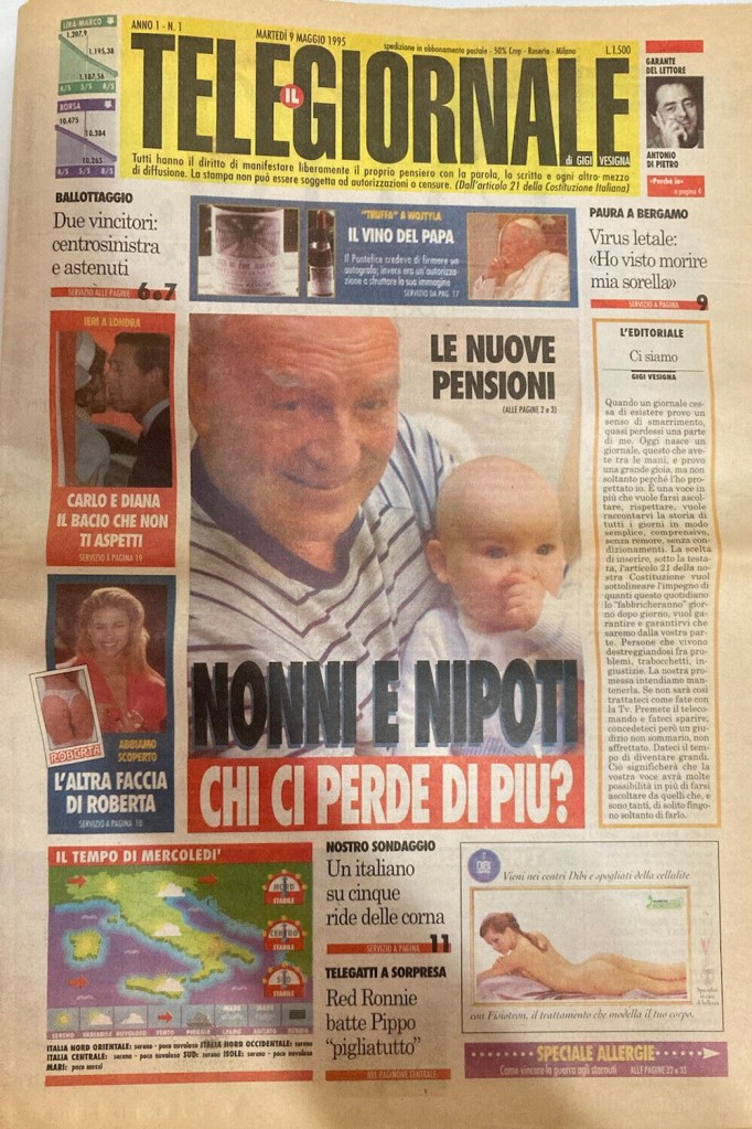 Edito da una piccola cooperativa (finanziata da una cordata di imprenditori), la TG, Il Telegiornale aveva come garante dei lettori Antonio Di Pietro che però in redazione si vide pochissimo: “Praticamente – ricordava Gigi Vesigna – fece alcune fotografie per la campagna pubblicitaria promozionale curata da Gavino Sanna, scrisse due articoli e poi sparì, dovevamo continuare a chiamarlo sollecitandogli gli articoli. La sua caduta in disgrazia a seguito di un avviso di garanzia nei suoi confronti, l’ostilità degli altri quotidiani, il fatto di non essere legati a grandi gruppi industriali, portarono alla chiusura de Il Telegiornale dopo soli 33 giorni. Il Telegiornale è stato l’ulteriore esempio dell’impossibilità di creare un quotidiano popolare nel nostro Paese.