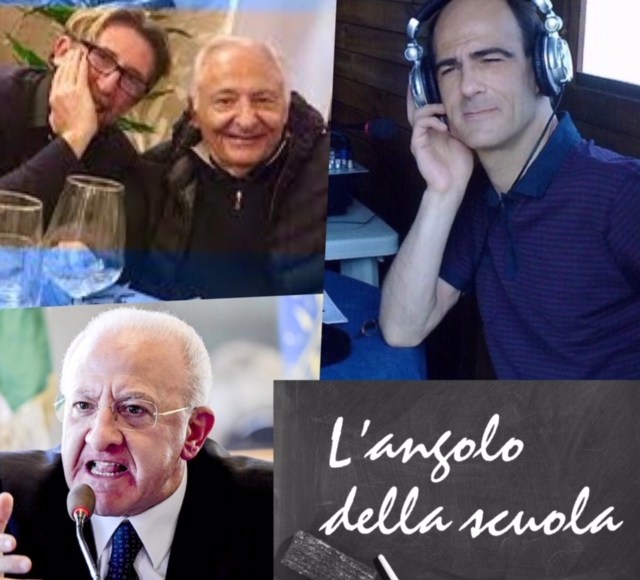 Oggi è andata in onda una replica de L’angolo della scuola, c’è stato un guasto tecnico. Saremo in onda mercoledì alle 13 su Radio Blu. E’ stato ripeto un guasto tecnico. Peccato perché ci sarebbe stato da ridere ma Luca è anche serio (dice sempre cose serie facendo ridere), sarebbe stato bella ascoltare Vincenzo De Luca. Grande Presidente. Show must go on.