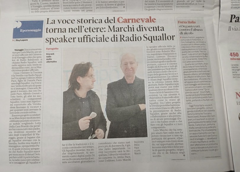 Loris Marchi la storica voce del Carnevale di Viareggio è tornato nell’etere: è la voce ufficiale di Radio Squallor. Loris è anche nell’enciclopedia della radio italiana e il 29 marzo sarà a Milano, con Attilio Pace, per la conferenza stampa di presentazione dell’opera. Il corposo lavoro si apre infatti con i primi tentativi di rottura del monopolio, risalenti addirittura al 1945, passando poi per quel che accadde prima del 1975. Quindi Radio Parma e Radio Milano International e via via, fino ad arrivare ad alcune emittenti (web e/o Dab+) nate negli ultimi anni: Radio Cecchetto, Radio Liscio e, appunto, Radio Squallor, una delle ultime nate, è infatti partita il giorno di Capodannno 2025.
