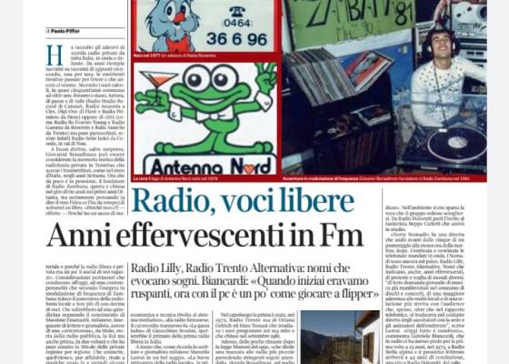 Ringrazio Andrea Piffer del Corriere di Trento, mi ha chiesto alcune informazioni sulle radio storiche del Trentino Alto Adige. Nei