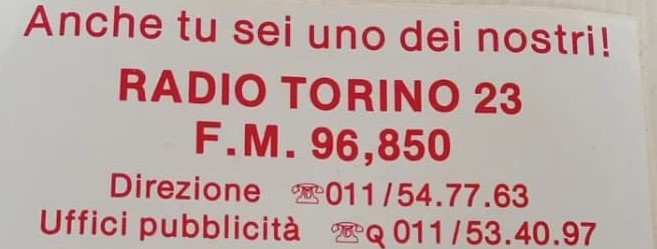 RADIO TORINO 23: emittente di Torino che irradiava i suoi programmi dai 96,850 MHz.
