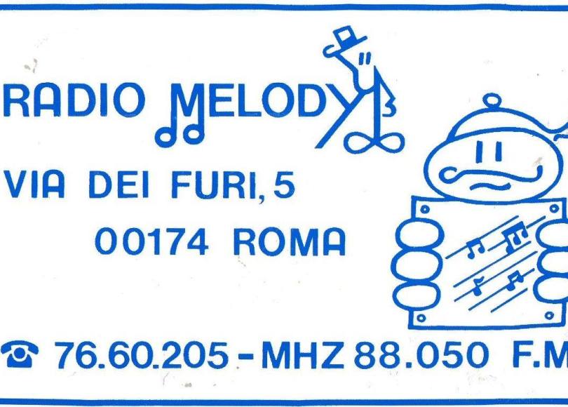 RADIO MELODY: 88,050 MHz., sede via dei Furi 5 Roma.