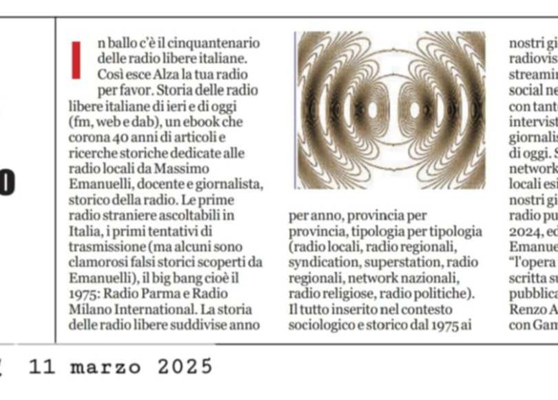 Ringrazio Nicola Santini e Dino Giarrusso, che non conosce personalmente, una sola precisazione, l’ebook enciclopedico è uscito il 10 marzo 2025 in occasione dei 50 anni di Radio Milano International.
