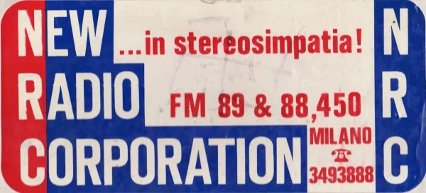 L’emittente nasce a Milano nel 1976 il 3 maggio 1976 per iniziativa dei fratelli Enrico (Chicco) e Davide (Dido) Grecchi. La sua sede è in una mansarda in via Leon Battista Alberti a Milano, irradia i suoi programmi dagli 88,450 MHz, copre tutta la città e l’hinterland nord. Il palinsesto propone: musica anni ’60, dediche (Do it yourself), un programma funky (“by Dido funky dj”), sport (con una Gialappa’s che muoveva lì i primi passi radiofonici), country e musica progressiva. Come ricorda il portale Radio Jurassico, “Il prodotto già mostrava una discreta professionalità, sia pure “in nuce”: fra le voci c’era quel Daniele Davi che sarebbe poi diventato uno dei protagonisti del primo “boom” dell’allora Radio Studio 105 (oggi Radio 105)”. Scrive Massimo Lualdi: “La diffusione del segnale è buona: diffusa con 4 dipoli dal lastrico del palazzo di Via Alberti, copre discretamente tutta Milano e la provincia a nord. Ma non basta, l’anima imprenditoriale della radio, Enrico Grecchi, è lungimirante e capisce subito che il periodo delle radio libere, destrutturate ed amatoriali, avrà vita breve: occorre presidiare velocemente l’etere con prodotti professionali sia sul piano tecnico che contenutistico. Così, Grecchi inizia a far promozione per far conoscere la radio. Ricorda Carlo Mantovani, il più grande produttore di adesivi delle radio libere lombarde in tutti gli anni ’70 e ’80: “Facevo tutt’altre cose, quando cominciai ad interessarmi dell’eventualità di stampare adesivi. Con le radio nessuno ci voleva lavorare: non c’era fiducia ed era poca cosa. C’era solo Radio Milano International che faceva ordini di un certo interesse, ma erano comunque commesse da 1.000 pezzi alla volta. La svolta l’ho avuta incontrando New Radio Corporation: c’erano Chicco Grecchi e Mario Rasini e fece scalpore il loro ordine di “ben” 5.000 pezzi” (Millecanali 230/1994). Oltre alla pubblicità esterna, NRC decide di puntare allo sviluppo tecnico e potenzia l’emissione acquisendo Radio Stereo 2 di Via Fauché 35 a Milano (che trasmetteva su 89,000 MHz, diffusi con un trasmettitore da 300 W). Grecchi, che nel frattempo ha spostato la sede dell’emittente in un appartamento in Corso di Porta Vittoria 18, comincia a guardare con interesse ad alcune iniziative extralocali che si stanno consolidando a Roma, quali i “circuiti” nazionali Radio Elle, Radio In e Radio Luna. Ed è proprio con Radio Luna che l’imprenditore decide di sposarsi nel 1978. Risolti alcuni problemi interferenziali con Radio Free Music di Segrate (che pure utilizzava in loco gli 89,000 MHz), dismessa l’iniziale frequenza 88,450 MHz a favore prima di Europa Radio e poi di Onda Radio Milano e spostata la sede in ampi studi tecnologicamente dotati in Via Lumiere 4 a Cologno Monzese (la cosiddetta Cinelandia – nella foto sotto uno degli studi), New Radio Corporation Stereo 2 (questo il complicato appellativo assunto sul finire del 1977) si trasforma in Radio Luna Milano e comincia a trasmettere i programmi registrati a Roma e consegnati (almeno una settimana prima, su bobina) alle stazioni affiliate dalla stazione madre romana (confermando il detto secondo il quale più il nome di un’emittente locale si faceva lungo, articolato e complicato maggiore era la possibilità che si affiliasse ad un circuito con un nome semplice…),