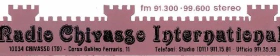 RADIO CHIVASSO INTERNATIONAL L’emittente nasce per iniziativa di Renza Spinello, irradiava i suoi programmi dai 91,300 e dai 99,600 MHz, aveva sede in Corso Galileo