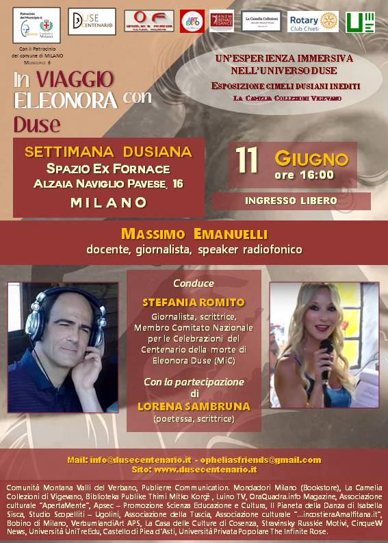 Ringrazio Lorena Sambruna e Stefania Romito, l’11 giugno alle 16 alla Fornace nell’ambito delle celebrazioni dusiane presenterò con Silvia Annicchiarico Alza la tua radio per favor, enciclopedia delle radio libere italiane, intervento di altri speaker, giornalisti e dj. Il 27 giugno sarò a Rimini, altro ritrovo dei dj, giornalisti e speaker della Romagna, grazie a Cristiano Paci, modererà il giornalista Giorgio Tonelli.