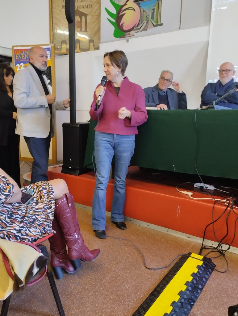 Silvia Annicchiarico, Marina Perzy, Gabriella Mancini premiazione di Luca Levati di Radio Lombardia.