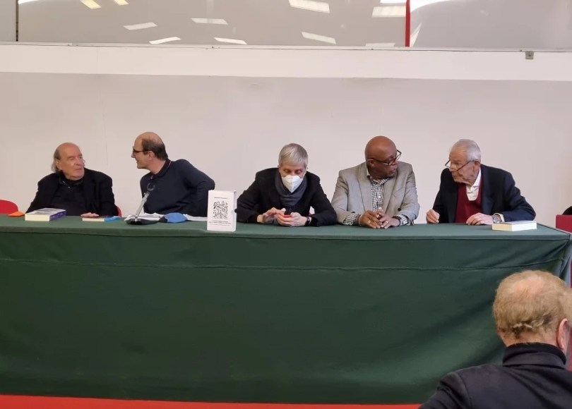 Stefano Zecchi, Massimo Emanuelli, Fabio Santini, Ronnie Jones, Mario Luzzatto Fegiz, presentazione dei volumi encicloepdici L’avventurosa storia della radio pubblica italiana. Milano, Circolo via De Amicis.